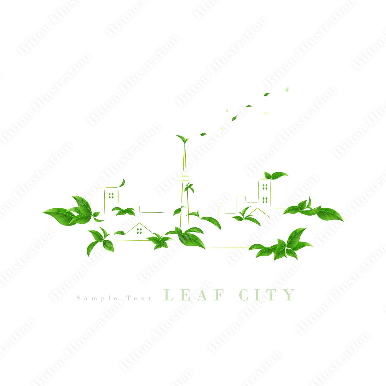 Adobe illustratorで描いた商用フリーのイラスト素材。青葉で描かれた街並み|エコロジーアートシリーズです。