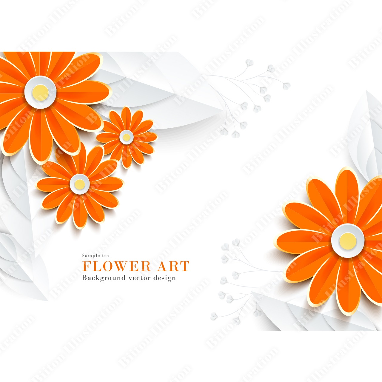 Adobe illustratorで描いた商用フリーのイラスト素材。抽象的なオレンジ色の花(マーガレット・カモミールなど)のペーパークラフト風イラスト|背景素材アートシリーズ