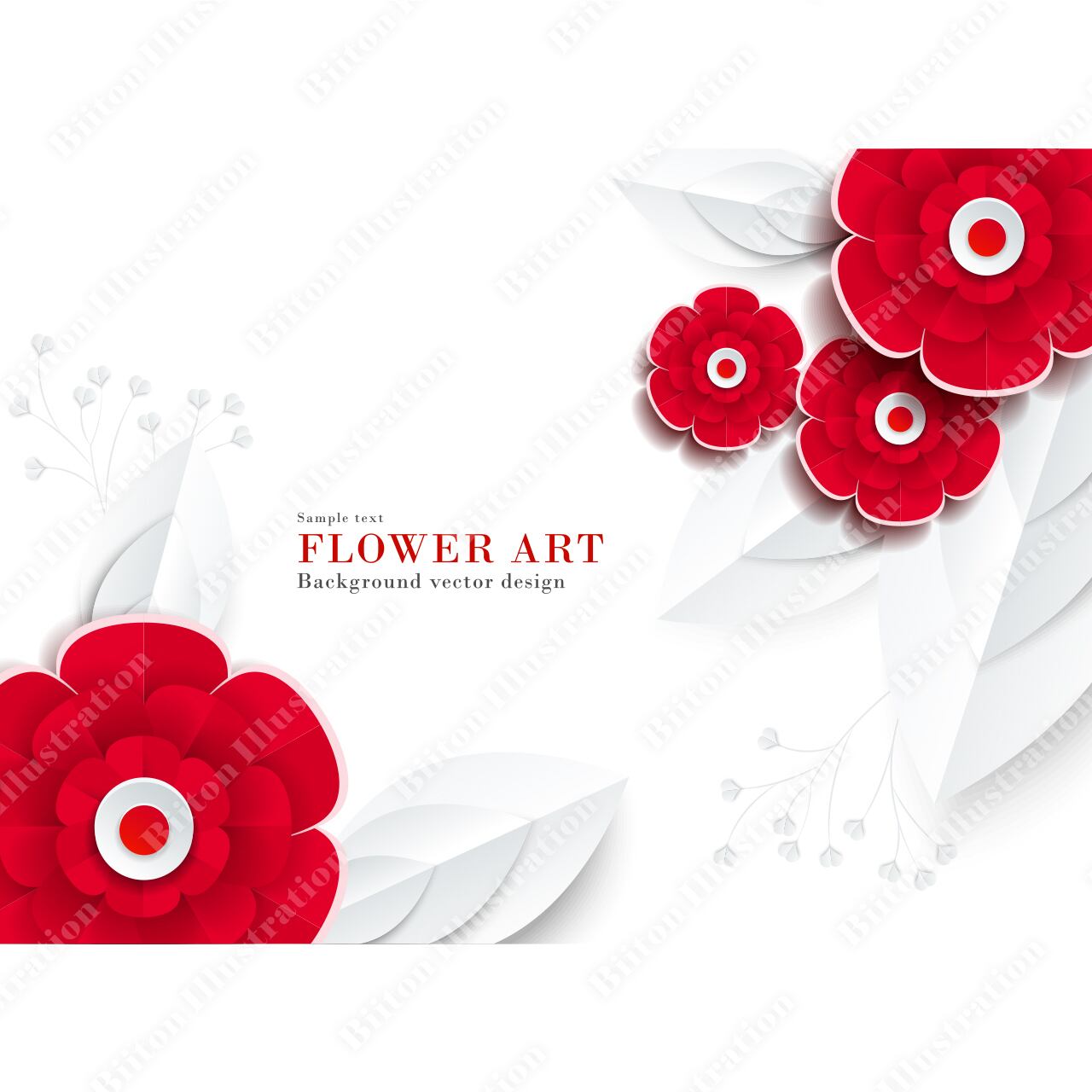 抽象的な赤い花(薔薇・椿・牡丹など)のペーパークラフト風イラスト|背景素材アートシリーズ