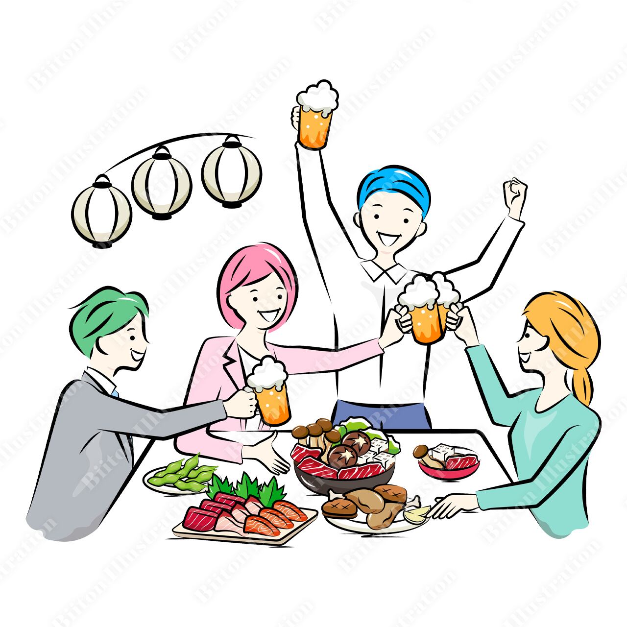 Adobe illustratorで描いた商用フリーのイラスト素材。会社の同僚達と飲み会で盛り上がるビジネスパーソン|ビジネスシーン。