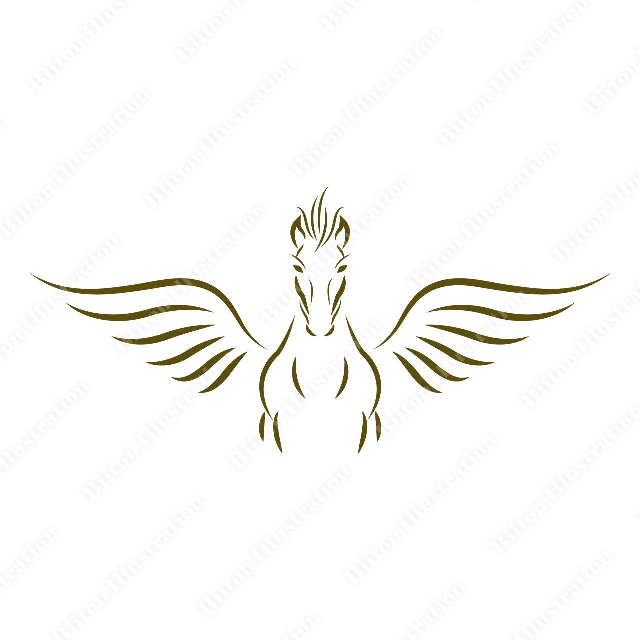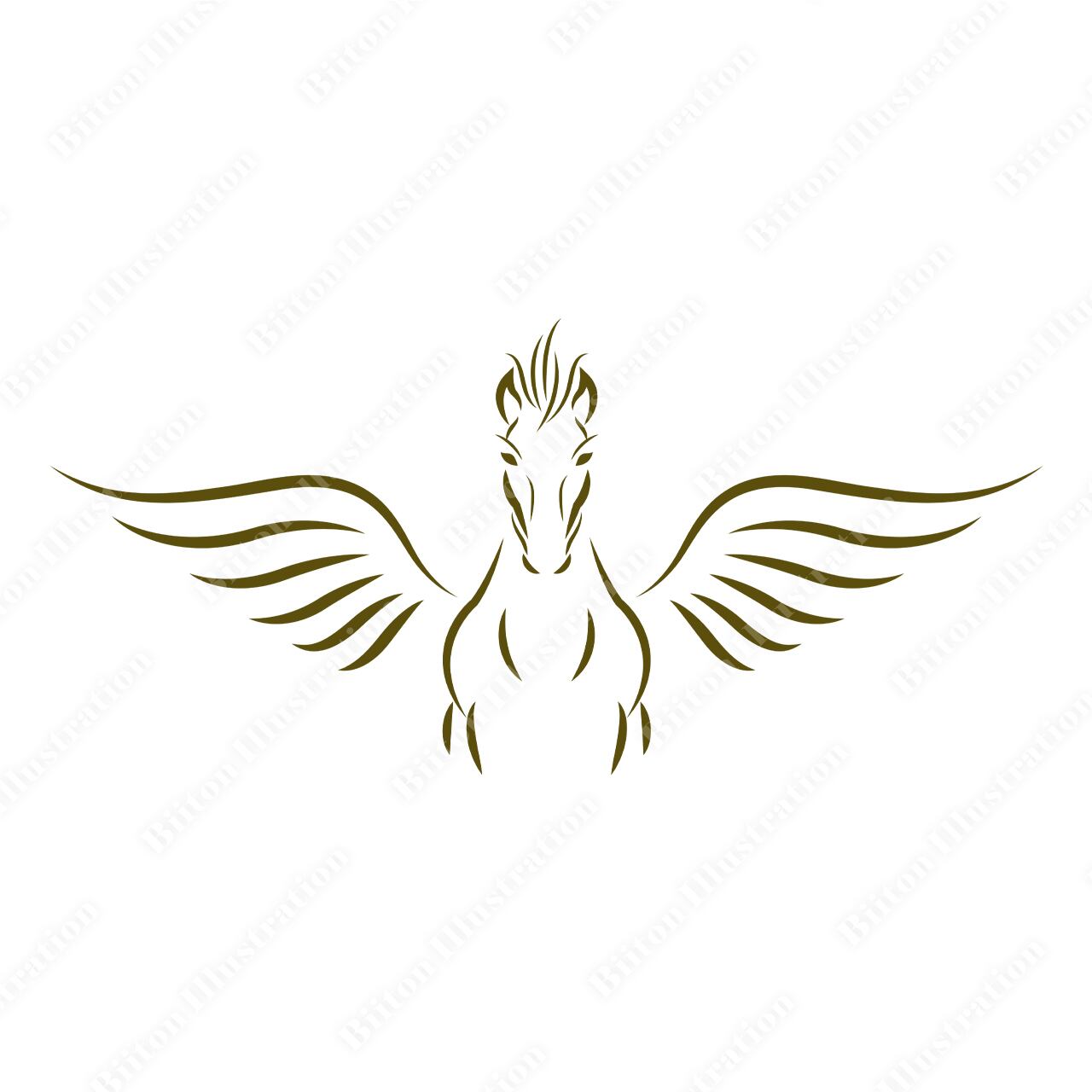 Adobe illustratorで描いた商用フリーのイラスト素材。2026年 午年の年賀状デザイン|シンプルなペガサス(馬)の線画イラスト。