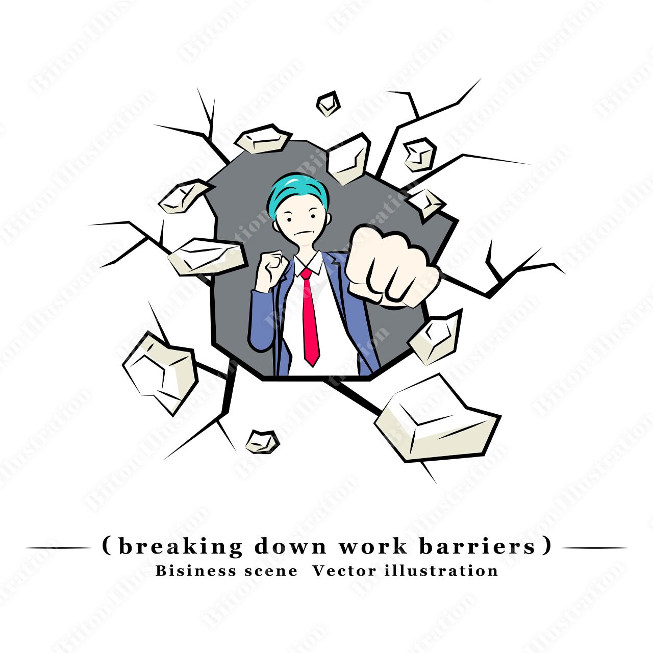 Adobe illustratorで描いた商用フリーのイラスト素材。仕事の壁を打ち破るビジネスマン|ビジネスシーン。