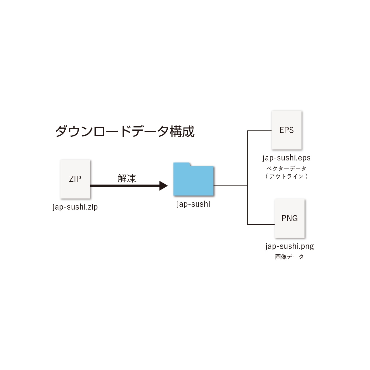 ●ファイル形式/圧縮ファイル(ZIP形式)の中に、PNG形式(背景透過)とアウトラインのベクターEPS形式がセットされています。
