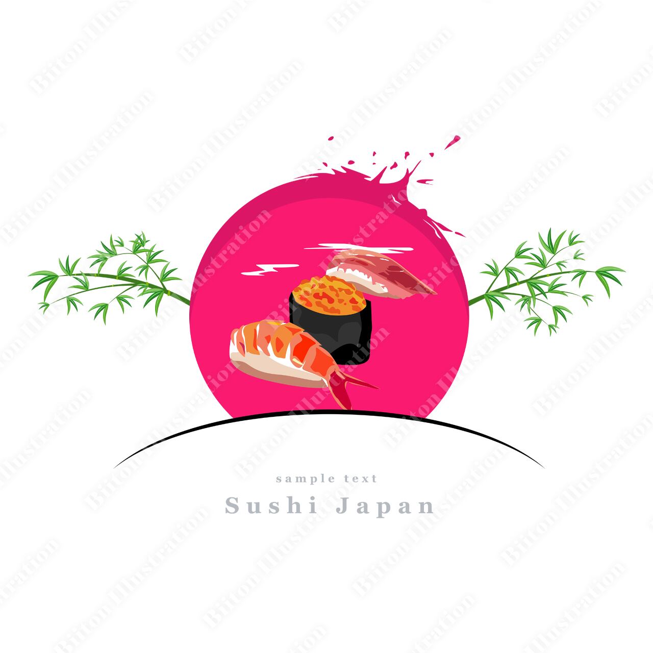 Adobe illustratorで描いた商用フリーのイラスト素材。寿司と竹(笹)|日本のイメージを描いたモダンアートシリーズ|ようこそ日本へ