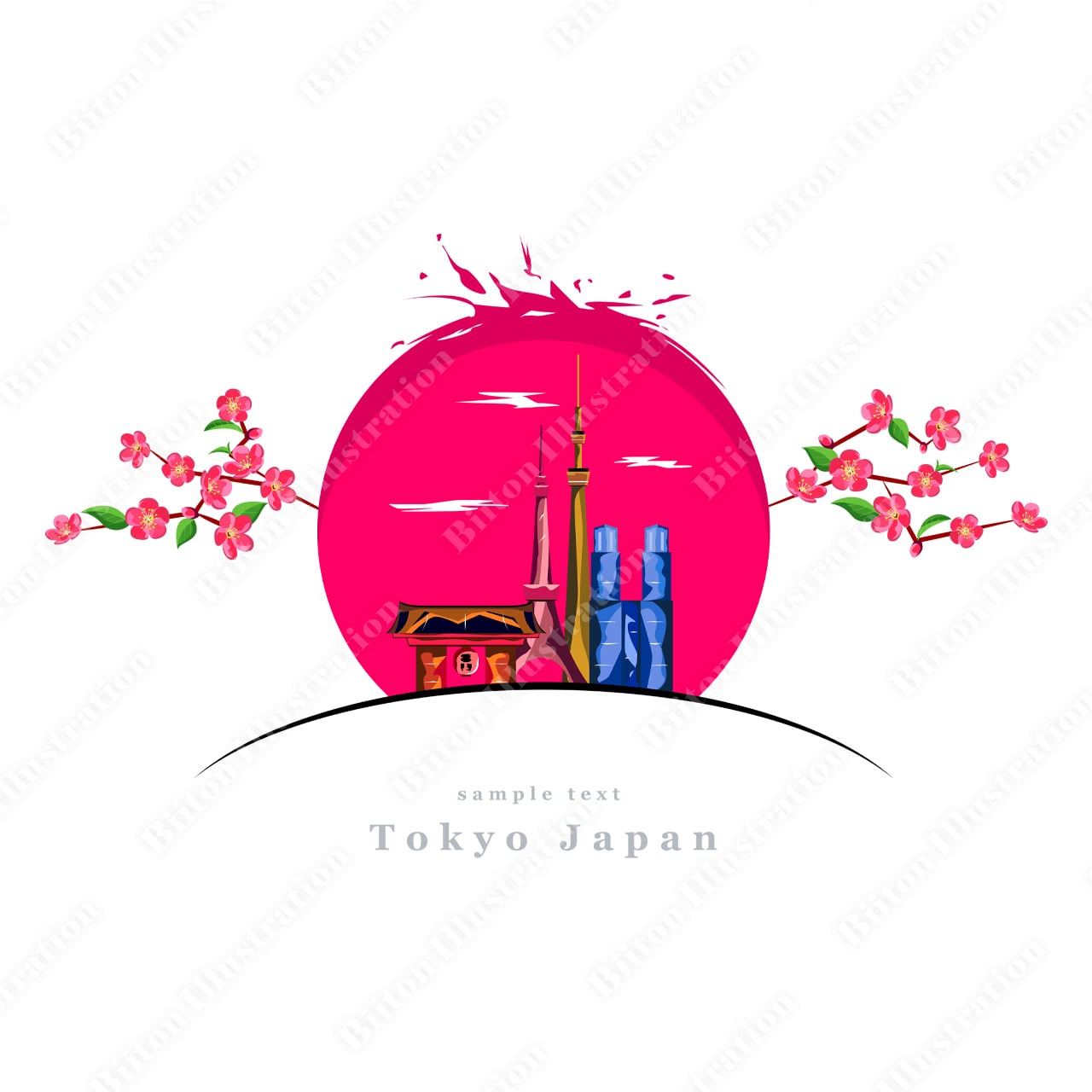 Adobe illustratorで描いた商用フリーのイラスト素材。東京と梅|日本のイメージを描いたモダンアートシリーズ|ようこそ日本へ