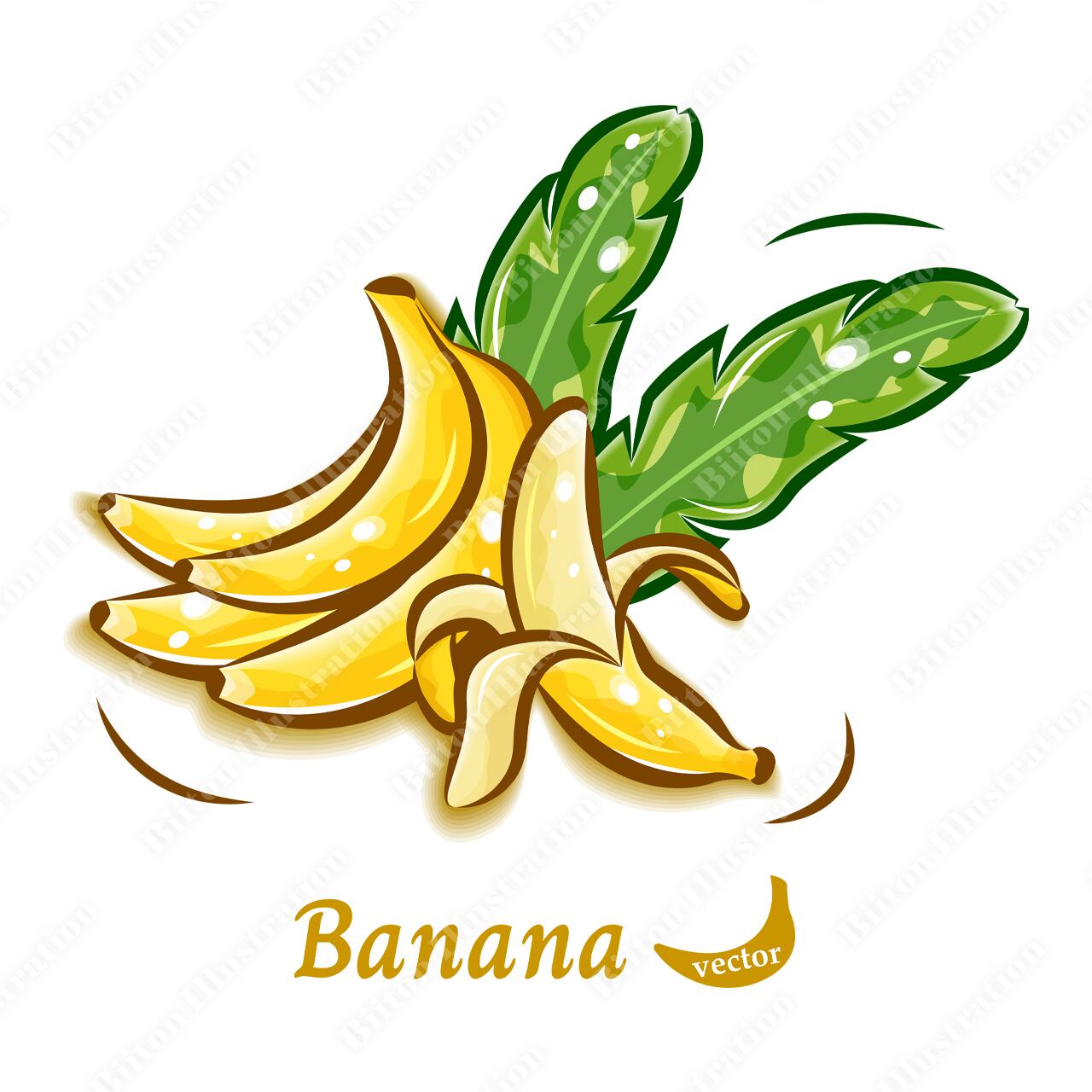 Adobe illustratorで描いた商用フリーのイラスト素材。バナナのポップアート素材|みずみずしく可愛い果物のベクターイラスト