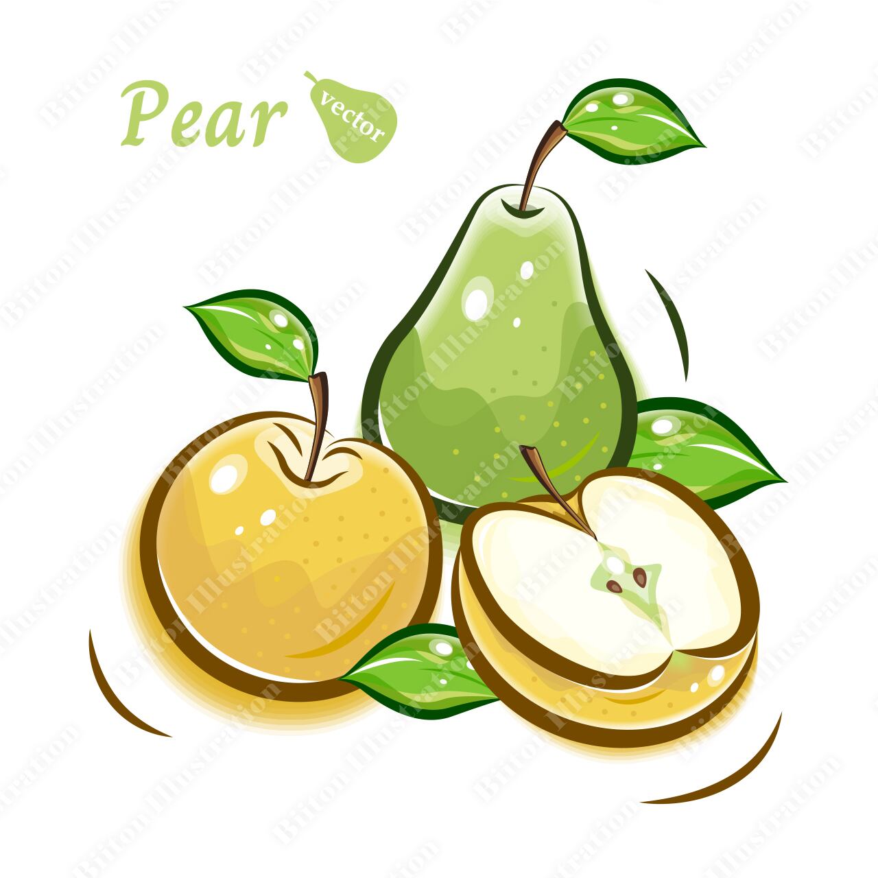 Adobe illustratorで描いた商用フリーのイラスト素材。梨,洋梨のポップで可愛いイラスト|新鮮な果物のベクター素材