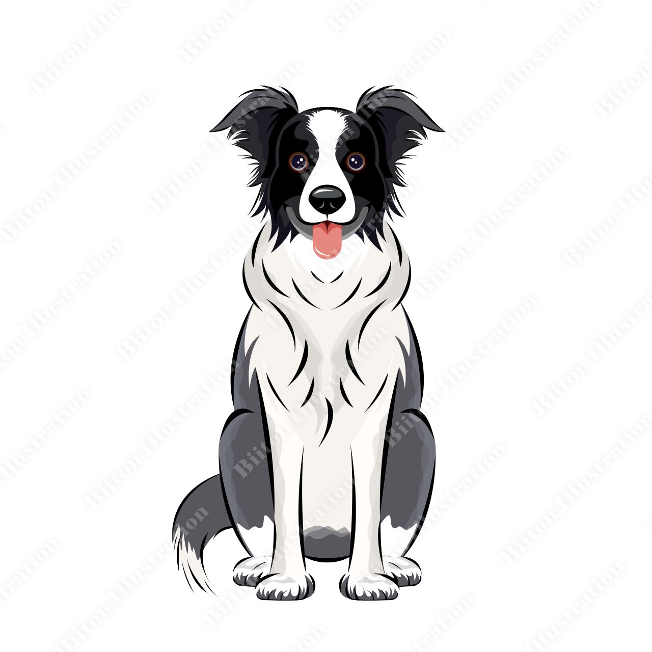 Adobe illustratorで描いた商用フリーのイラスト素材。頭が良くて忠実!優れた運動能力で牧羊犬としても活躍するボーダー・コリーのイラストです。