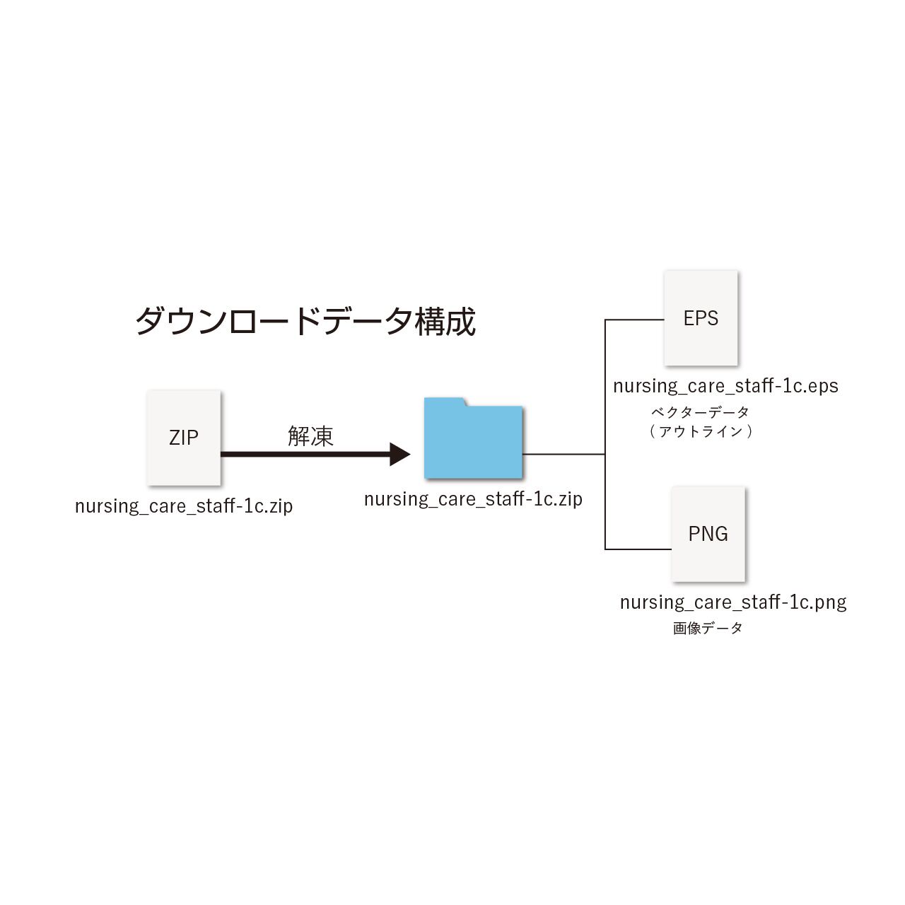 ●ファイル形式/圧縮ファイル(ZIP形式)の中に、PNG形式(背景透過)とアウトラインのベクターEPS形式がセットされています。