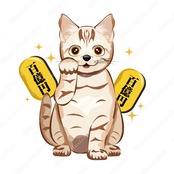 Adobe illustratorで描いた商用フリーのイラスト素材。マンチカンが招き猫になって金運・幸運を呼んでくるイラストです。