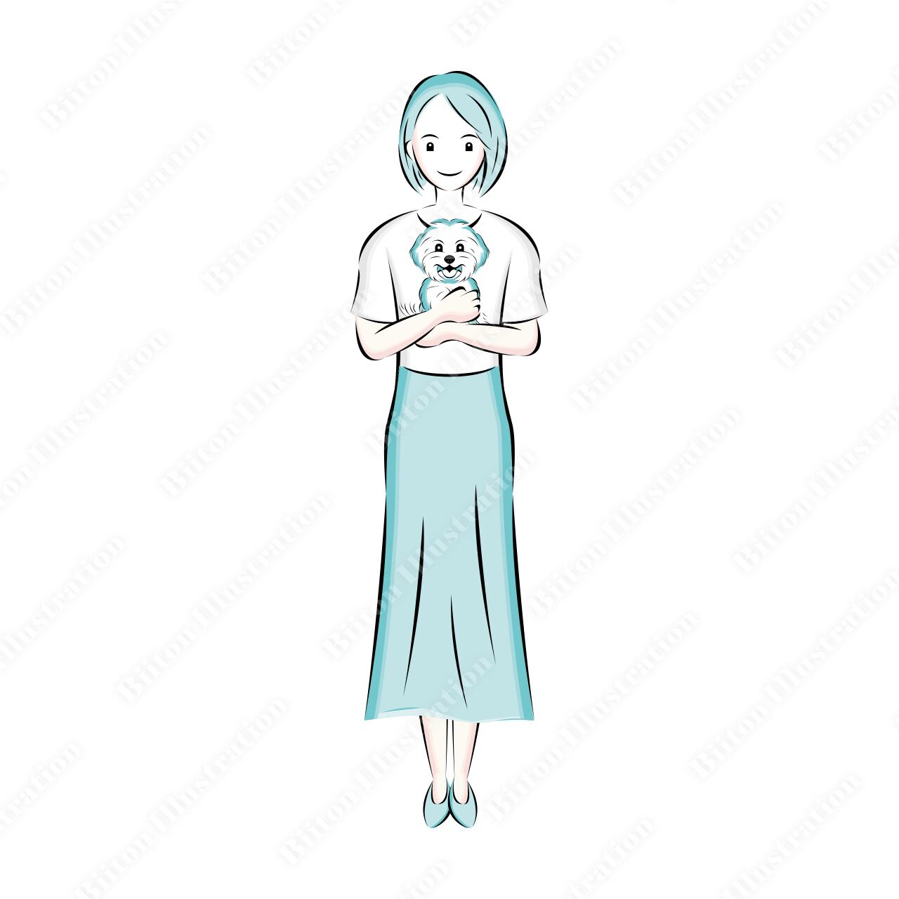 Adobe illustratorで描いた商用フリーのイラスト素材。陽気で人懐こいセラピー犬のマルチーズと飼い主のイラストです。