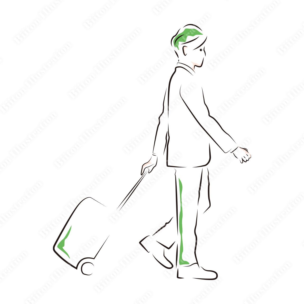ビジネス|出張に向かうキャリーケースを引くビジネスマンのイラスト