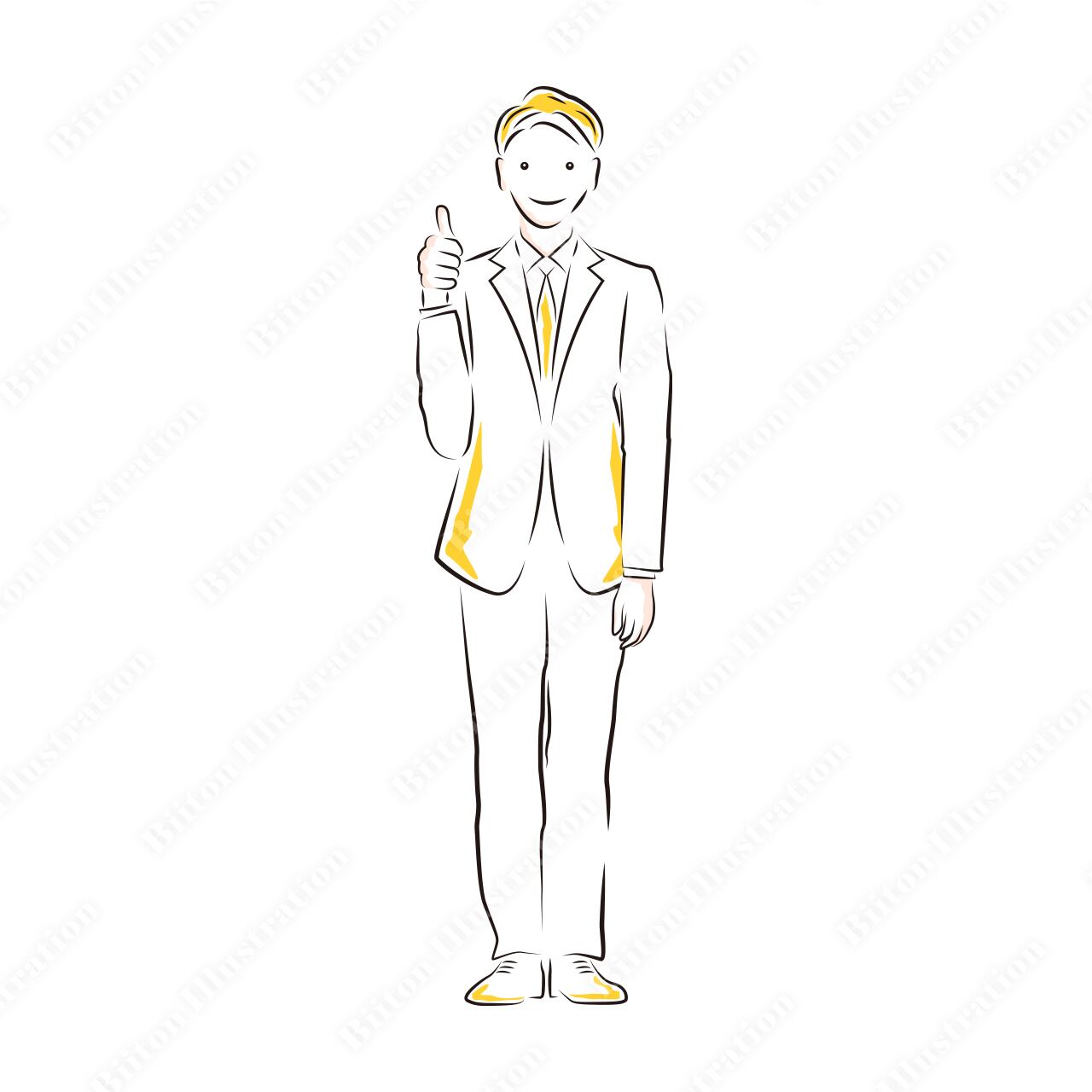 Adobe illustratorで描いた商用フリーのイラスト素材。笑顔でグッドをするビジネスマンのポーズのイラストです。