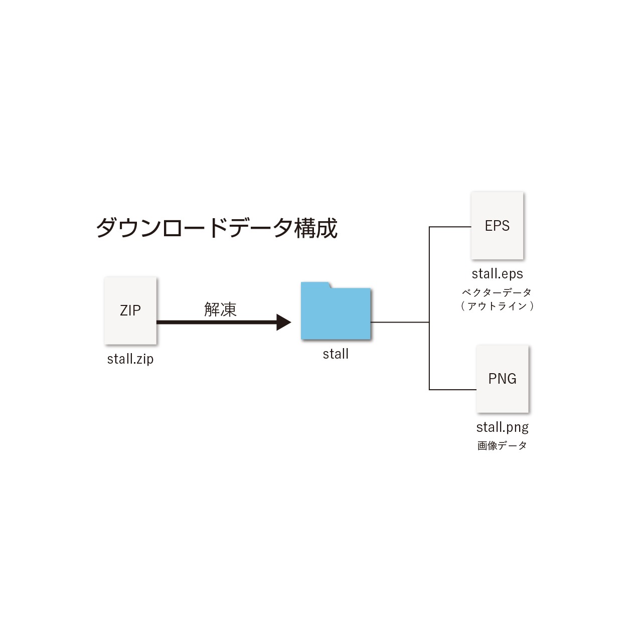 Adobe illustratorで描いた商用フリーのイラスト素材。屋台|お店の外観をイメージした線画イラストシリーズです。