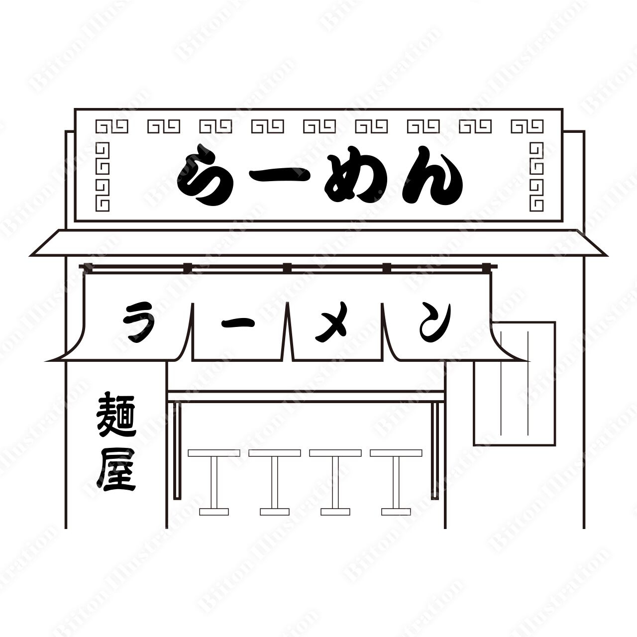 Adobe illustratorで描いた商用フリーのイラスト素材。ラーメン屋|お店の外観をイメージした線画イラストシリーズです。