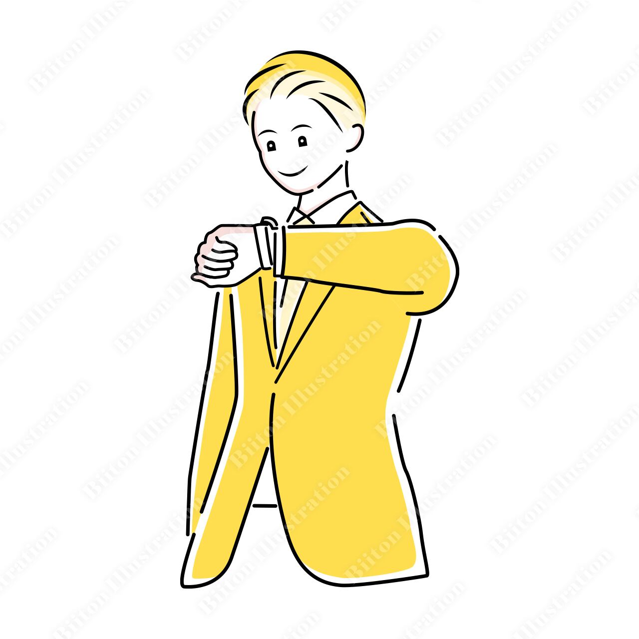 Adobe illustratorで描いた商用フリーのイラスト素材。腕時計を見て時間を気にするビジネスマンのイラストです。