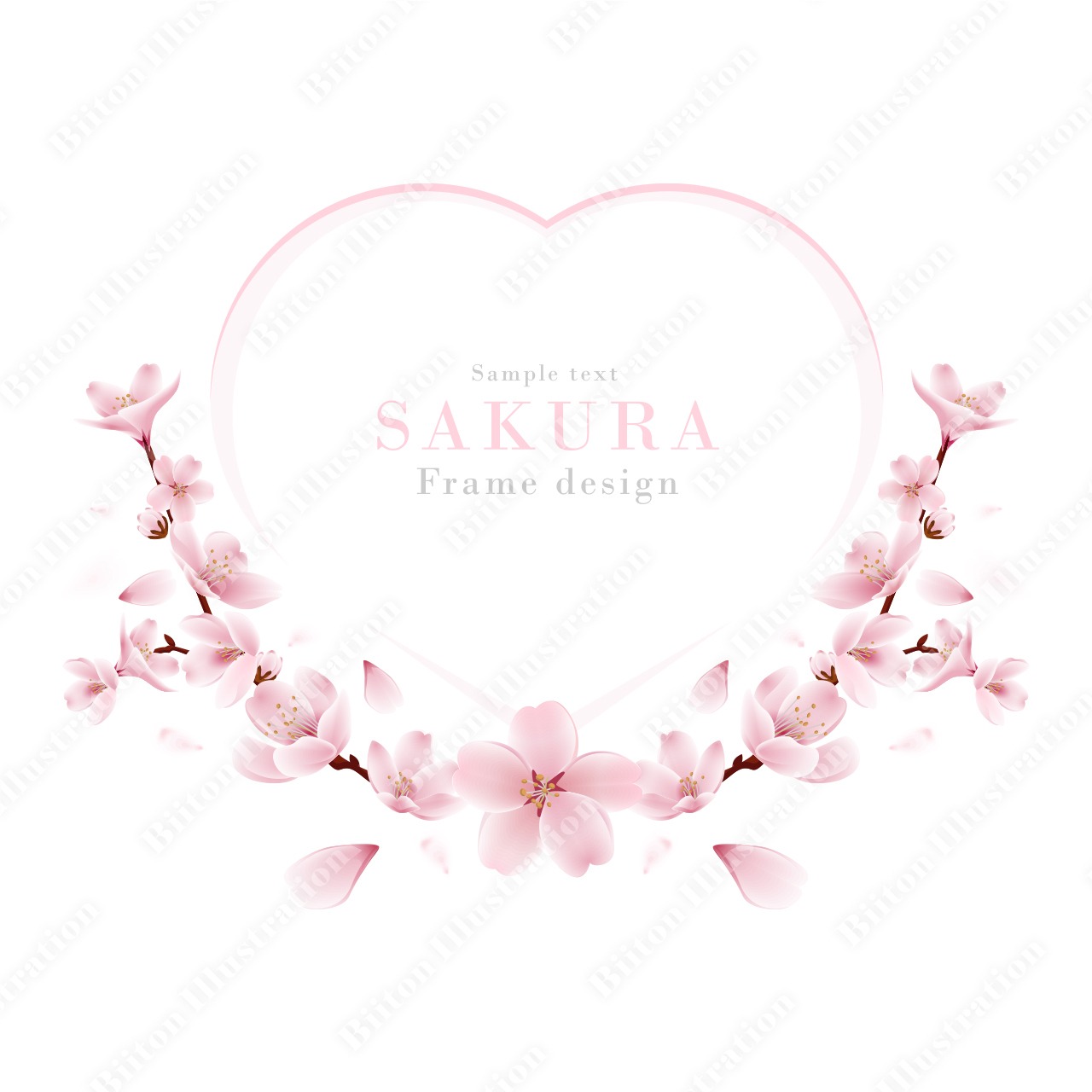 Adobe illustratorで描いた商用フリーのイラスト素材。桜の花のフレームシリーズ-01|春の桜のリアルなベクターイラストです。