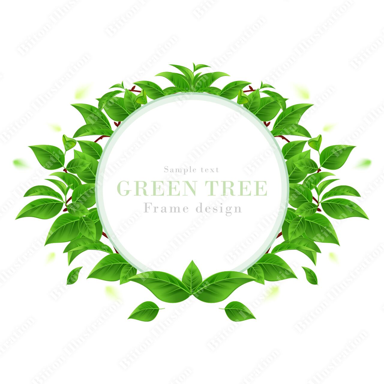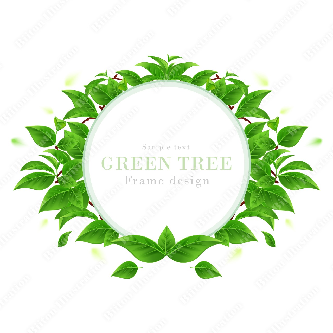 Adobe illustratorで描いた商用フリーのイラスト素材。青葉のフレームシリーズ-03|新緑の木のリアルなベクターイラストです。