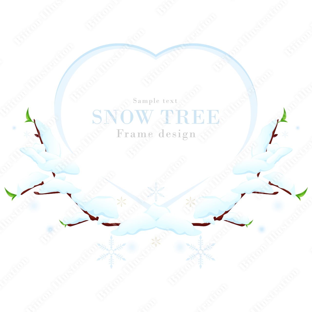 Adobe illustratorで描いた商用フリーのイラスト素材。雪木立のフレームシリーズ-01|冬の雪のリアルなベクターイラストです。
