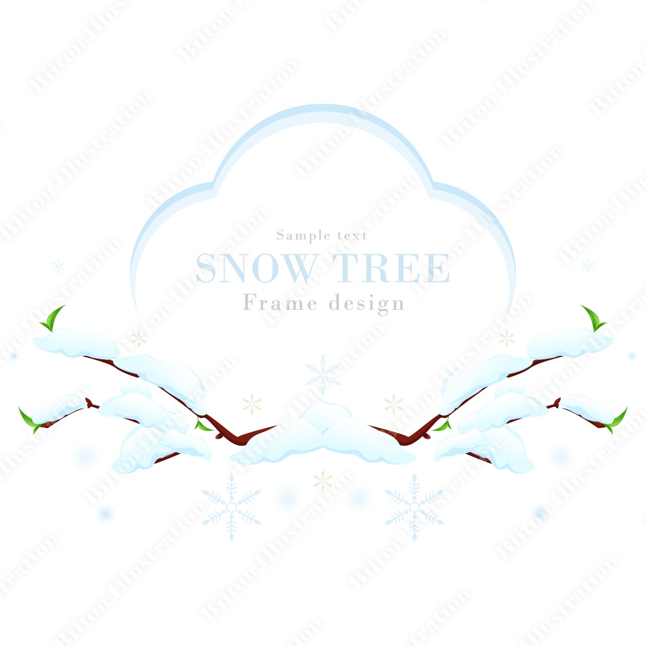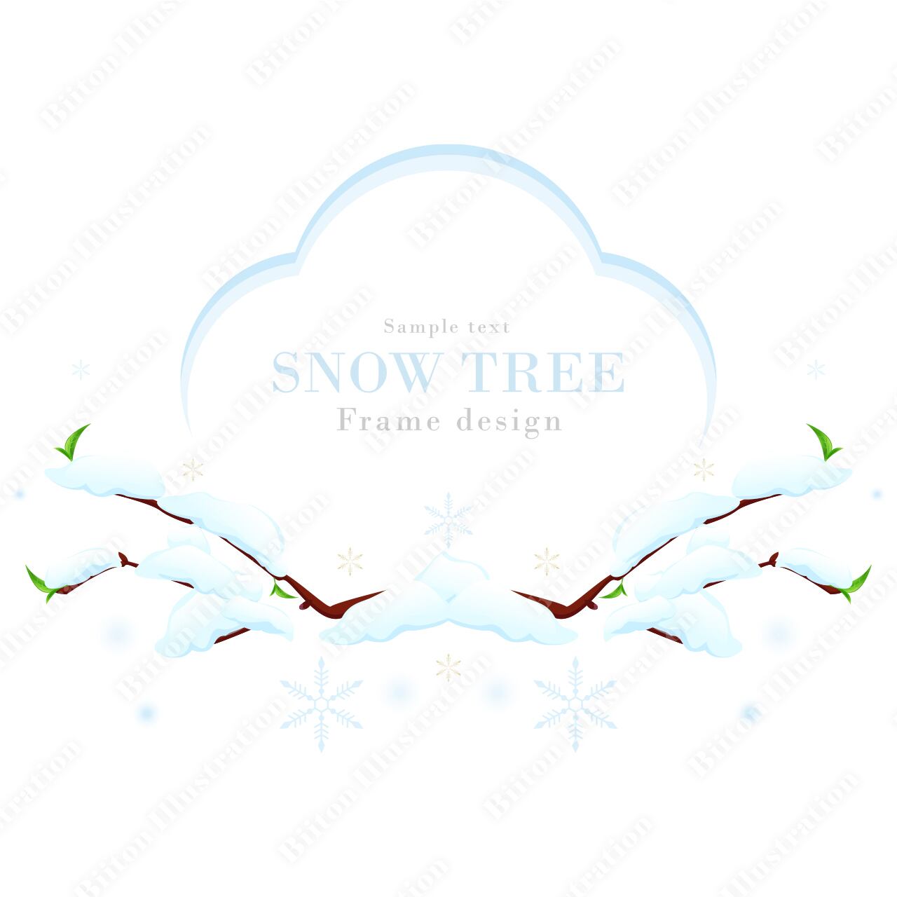 Adobe illustratorで描いた商用フリーのイラスト素材。雪木立のフレームシリーズ-02|冬の雪のリアルなベクターイラストです。