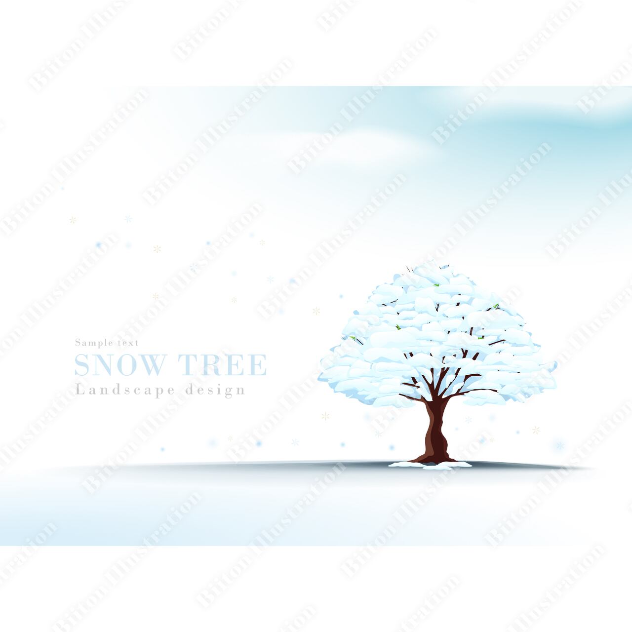 Adobe illustratorで描いた商用フリーのイラスト素材。青空広がる雪原の上に立つ雪積もる木立のリアルイラスト|冬の景色。
