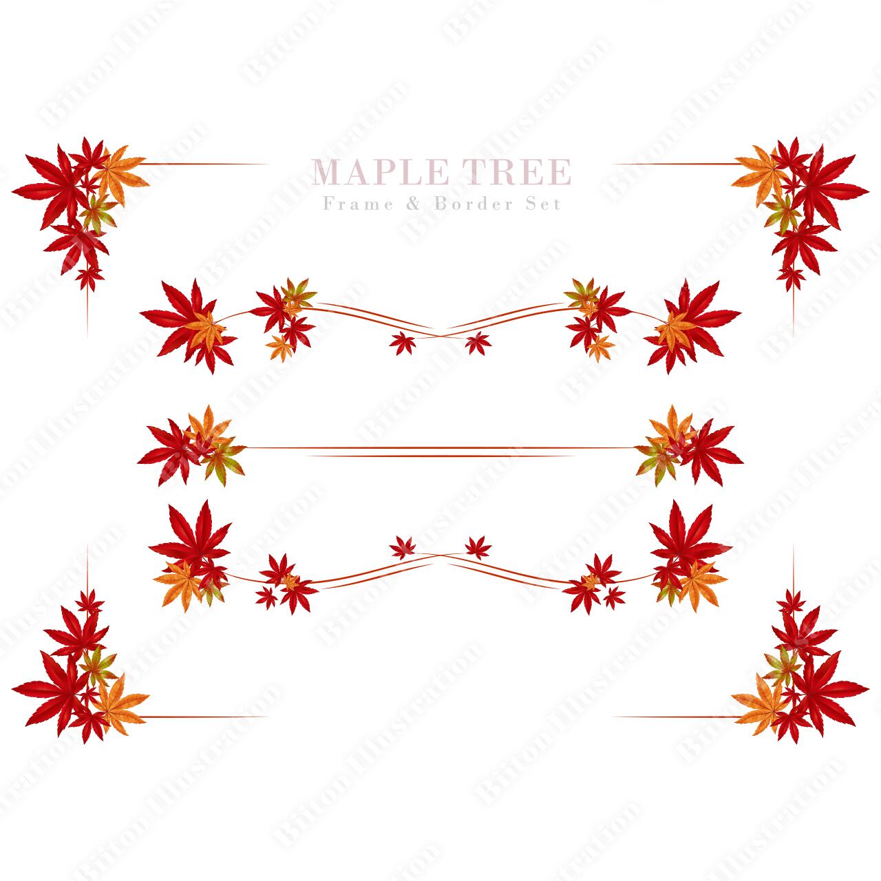 Adobe illustratorで描いた商用フリーのイラスト素材。紅葉のフレームシリーズ-01|紅葉の木のリアルなベクターイラスト|秋の景色です。