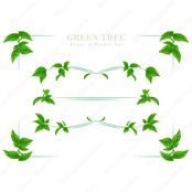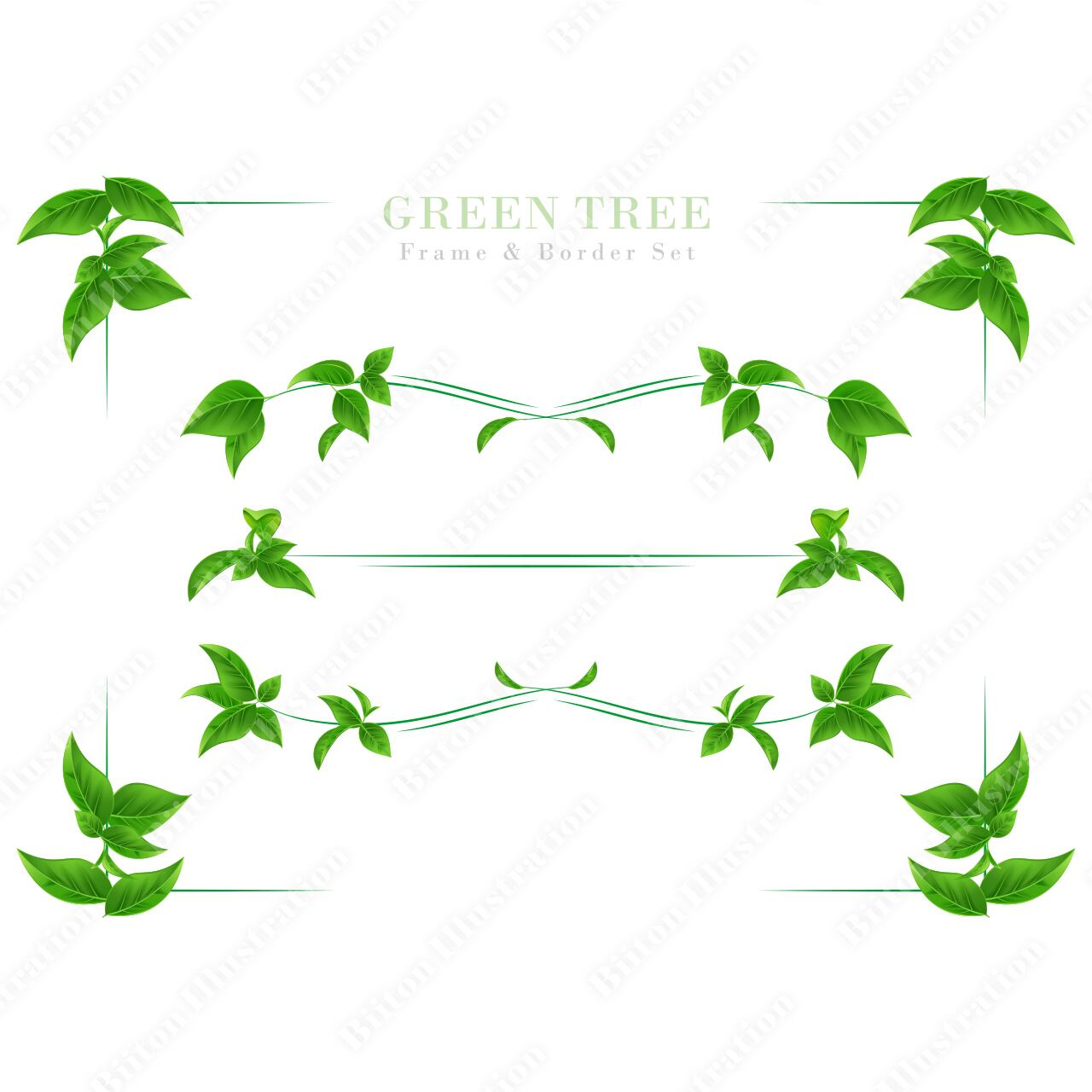 Adobe illustratorで描いた商用フリーのイラスト素材。青葉,新緑のフレームとボーダーのセット|木の葉のリアルなベクターイラスト|春夏の景色