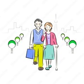 Adobe illustratorで描いた商用フリーのイラスト素材。お出かけで買い物、旅行をするシニア夫婦|介護看護シリーズ